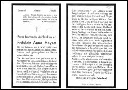 Eltern: Johann Hubert Heyers u. Katharina geb. Hahn; Fräulein; langjährige Krankheit |