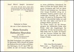 Eltern: Heinrich Lenßen u. Hubertine geb. Schwiegers; ∞ 27.4.1927 Laurenz Heynckes; lange Krankheit; |