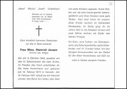 ∞ 16.2.1901 Heinrich Jansen, † 1941; 6 K., davon 2 im Kindesalter †; 2 Söhne im 2. Weltkrieg gefallen; |