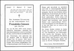 Lange, schwere Krankheit; ∞ 18.1.1919 Leonhard Jansen, † 22.11.1950; 3 K.; Druck in Heinsberg |