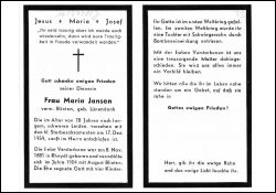 Jansen, geb. Lünendonk, verw. Blinten | Vorname: |