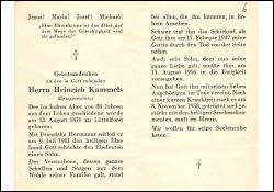 ∞ 9.7.1901 Franziska Hermanns, † 17.2.1937; 1 Sohn, † 11.8.1956 |