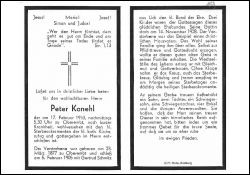 ∞ 5.2.1905 Gertrud Schmitz aus Lich, † 14.11.1928; 3 K.; Druck in Bedburg/Erft |