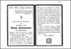∞ 25.2.1886 Johann Theodor Kaufmann, vor 11 J. †; 5 K., davon 3 †; lange, schmerzhafte Krankheit |