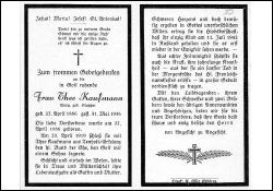 ∞ 23.4.1919 Theo Kaufmann aus Tenholt/Erkelenz; 1 Sohn, am 11.7.1942 im 2. Weltkrieg in Russland gefallen; Druck in Erkelenz |
