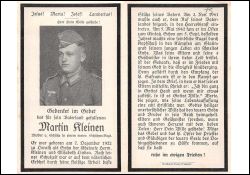 Gefallener 2. Weltkrieg; Eltern: Hermann Kleinen u. Elisabeth geb. Linden; 2.11.1941 Einberufung; am 5.5.1942 zum Einsatz im Osten |