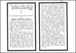 Mitgl. kath. Arbeiterverein; Eltern: Albrecht Klöters u. Anna Katharina geb. Kuhlen; ∞ 12.5.1903 Elisabeth Blum aus Odenkirchen; 7 K.; ältester Sohn im 2. Weltkrieg gefallen; zog von Odenkirchen nach Bellinghoven b. Erkelenz, um dort bei der Bohr Arbeit zu finden als Anreißer; 1945 aus der Evakuierung Rückkehr nach Bellinghoven |
