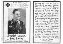 Gefallener 2. Weltkrieg: Flugzeugabsturz; Kampfgeschwader Boelcke; Eltern: Johann Kohlen u. G. geb. Buschen; |