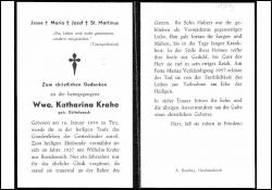 ∞ 1927 Wilhelm Krahe aus Borschemich, † nach einem Jahrzehnt;Sohn Hubert; lange Krankheit; Druck in Hochneukirch |