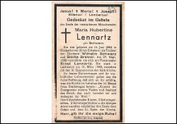 Eltern: Wilhelm Schwarz u. Sibilla Brewer; ∞ 27.9.1890 Postmeister Ernst Lennartz; 6 überlebende Kinder |