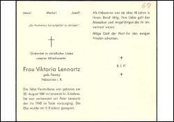 ∞ Peter Lennartz, † 1945; 5 K.;über 40 J. als Hebamme tätig; im Ruhestand |