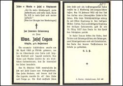 ∞ 16.10.1920 Josef Loyen aus Kleingladbach, † 19.2.1953 ; 6 K., davon 1 früh †, 1 Sohn im 2. Weltkrieg gefallen; Druck in Hückelhoven |
