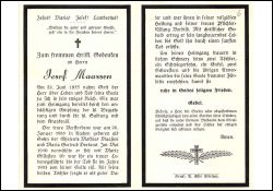 Eltern: Mathias Maaßen u. Maria Gertrud geb. Dortans; ∞ Mai 1910 Maria Gilleßen, † 1953; 2 Töchter; Druck in Erkelenz |