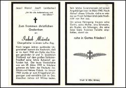 Gefallener 2. Weltkrieg; Familie war lange Jahre in Ungewissheit; Eltern: Joserf Mäntz u. Helene geb. Eickels; Januar 1943 Einberufung; ∞ Dez. 1943 Wilma Leden |