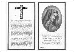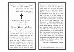 ∞ 12.7.1921 Peter Mohren, † 3.5.1942; kinderlos; zug 2 Kinder ihres Mannes aus 1. Ehe groß; lange, schwere Krankheit; Druck in Hochneukirch |