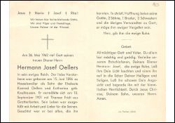 Eltern: Konrad Oellers u. Katharina geb. Kaulhausen; ∞ 10.9.1931 Therese Fridt aus Grottenherten; 2 überlebende Söhne; Druck in Jülich |