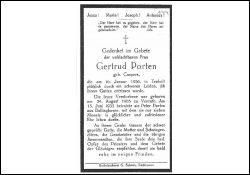 ∞ 15.6.1935 Peter Porten aus Bellinghoven; bereits nach 7 Monaten Ehe † |