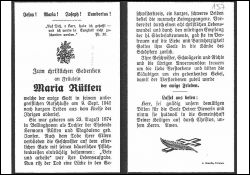 Fräulein; Eltern: Hermann Rütten u. Magdalena geb. Jansen; blieb nach dem Tod der Eltern bei Geschwistern auf dem elterlichen Hof; Druck in Erkelenz |