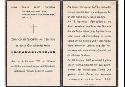 Eltern: Josef Sauer u. Elisabeth geb. Hunger; schwere Beinverwundung im 2. Weltkrieg, schweres Leiden; ∞ 15.11.1950 Anni Lesmeister; 1 Sohn; |
