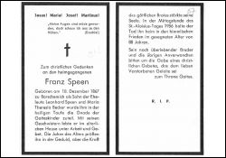 Eltern: Leonhard Speen u. Maria Theresia geb. Becker; lebte mit Geschwistern im elterlichen Haus |