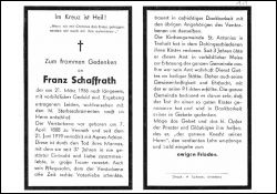 Längeres Leiden; ∞ 21.6.1919 Agnes Adrian; Pflegesohn; seit 3 J. Küster der Pfarrgemeinde St. antonius in Tenholt; ruck in Erkelenz |
