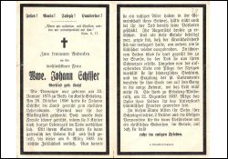 ∞ 26.10.1896 Johann Schiffer, † 8.3.1935; 4 K., davon 3 früh †; schmerzliches Siechtum |