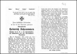 Gefallener 2. Weltkrieg; Eltern: Cornelius Schrammen u. Gertrud geb. Schaber; ∞ 25.2.1933 Louise Jansen; 3 K., davon Söhnchen Tni am 2.7.1943 tödlich verunglückt; kämpfte Winter 1941/42 mit Kampfgruppe Scherer in Cholm; Heldenfriedhof Vilaka, Lettland |