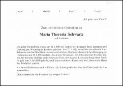 Eltern: Josef Lemmen u. Gertrud geb. Weinberg; ∞ 27.2.1935 Alex Schwartz von Gut Wolfsfurt, † 25.2.1983; 2 K. |