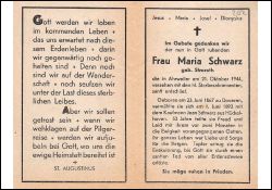 ∞ 1.6.1892 Kaufmann Jean Schwartz aus Hückelhoven, † vor 2 Monaten; tapfer ertrug sie die Evakuierung |