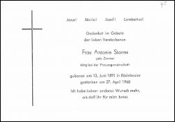 Storms, geb. Zimmer | Vorname: |