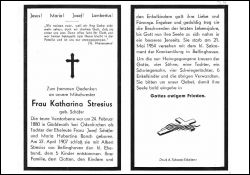 Eltern: Franz Josef Schäfer u. Maria Hubertine geb. Borsch; ∞ 27.4.1907 Albert Stresius aus Bellinghoven; 5 K. |