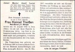 Eltern: Anton Hittingen u. Anna geb. Koenen; ∞ 26.10.1917 Konrad Theißen aus Terheeg; 9 K., davon 3 jugendl. †; wegen des Krieges 1944 nach Jena evakuiert |