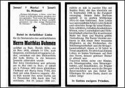 ∞ 8.2.1892 Maria Anna Pohl, † 13.11.1906; 10 K.; ∞ 27.1.1908 Sophia Statz, † 12.9.1935; Sohn Bertram im 1. Weltkrieg gefallen; Mitgl. in vielen Vereinen: Kirchenchor, Schützen u.a. |