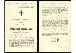 Lehrerin; Mitl. der Legion Mariens; Eltern: Eheleute Thommessen-Gilson; Lehrerinnenseminar in Bastogne; seit 1929 Lehrerin, 1932-44 Lehrerin in St. Vith; konnte nach 1945 lange nicht mehr als Lehrerin arbeiten; 1955 dann wieder in Doveren, Kr. Erkelenz, als Lehrerin tätig |