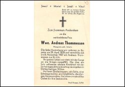 ∞ 8.11.1907 Andreas Thommessen aus St. Vith; jahrelange schwere Krankheit; 1 überlebender Sohn; Druck in St. Vith |