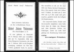 ∞ 11.9.1886 Anna Margarete Kaumanns, † 7.2.1890; 1 Tochter; ∞ 20.6.1892 Maria Gertrud Kaumanns; 7 K.; Druck in Garzweiler |