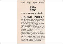 ∞ 1912 Margarethe Hubertine Trilges; 6 K., davon 1 †; Mitgl. St. Sebastianua-Bruderschaft u. Kirchenchor |