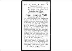 Eltern: Jakob Nießen u. Anna Maria Theißen; ∞ 19.9.1919 Heinrich Vell aus Watern; langjährige Krankheit |