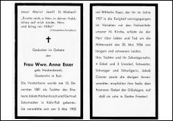 Gastwirtin in Buir; Eltern: Jakob Hackenbroch u. Gertrud geb. Schumacher; ∞ 3.5.1903 Wilhelm Esser, † 1927; 1 überlebende Tochter |
