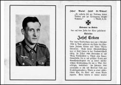 Gefallener 2. Weltkrieg; Eltern: Johann Erken u. Anna Maria geb. Schreiner; seit 1926 Hausdiener auf Burg Reichenstein a. Rh.; ∞ Febr.1940 Gertrud Leiß aus Trechtingshausen a.Rh.; 1 K.; Grab in Malje Wistery |