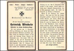 Gefallener 2. Weltkrieg; Eltern: Lambert Winkels u. Anna geb. Kau; lernte bei seinem Vater das Uhrmacherhandwerk; ∞ 30.12.1939 Helene Maar; 1 Kind; 15.1.1941 Einberufung, Russland; |