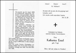 ∞ 2.1.1923 Peter Ensel aus Niedert im Hunsrück, n. 13 J. †; 4 K., davon 2 früh †; schwere Kriegsjahre |