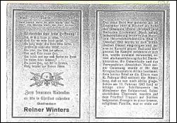 Gefallener 2. Weltkrieg; Eltern: Franz Winters u. Katharina geb. Lindenlauf; Anstreicherhandwerk; 1.10.1940 Einberufung; nach Russland; nach Verwundung u. Genesung sollte er nach Afrika kommen; Friedhof Trapani auf Sizilien; war Mitgl. Kirchenchor |