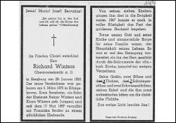 Oberpostsekretär a. D.; Eltern: Reiner Winters u. Klara geb. Jumpertz; ∞ 17.5.1897 Franziska Becker; 7 K., davon 3 †; 1947 Goldhochzeit; |