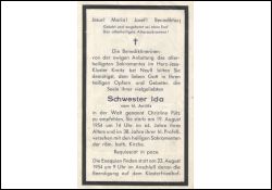 64 J.; Schwester vom hl. Antlitz; Benediktinerinnen von der ewigen Anbetung des allerheiligsten Sakramentes im Herz-Jesu-Kloster Kreitz bei Neuss; im 38. Jahr ihrer hl. Profess |
