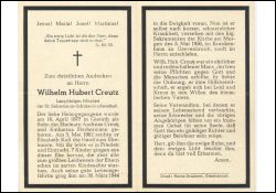 Langj. Mitgl. St. Sebastianus-Schützenbruderschaft; Eltern: Andreas Creutz u. Katharina geb. Fischermann, † 30.3.1944; ∞ 5.5.1902 Elisabeth Koll; 7 K., alle früh †; |