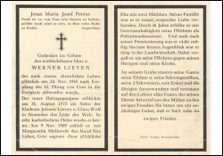 Eltern: Johann Lieven u. Clara geb. Wolf; ∞ 9.11.1909 Margaretha Mollstroh; 2 Mädchen; 26 J. lang Polizeiwachtmeister; nach der Pensionierung in der Landwirtschaft tätig; |
