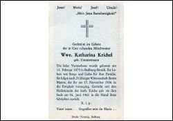 Ihr Mann † 17.11.1936; 25 J. Witwe; Druck in Bedburg/Erft |