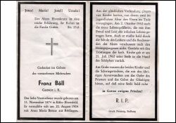 Gastwirt i. R.; ∞ 20.8.1904 Anna Maria Breuer aus Rödingen; 4 K., davon 2 jugendl. †; Druck in Bedburg/Erft |