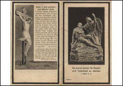 Gefallener 2. Weltkrieg; Bruder Adolf vor 18 M. mit 12 J. †; Wohnort Obergeckler; Druck in Koblenz |